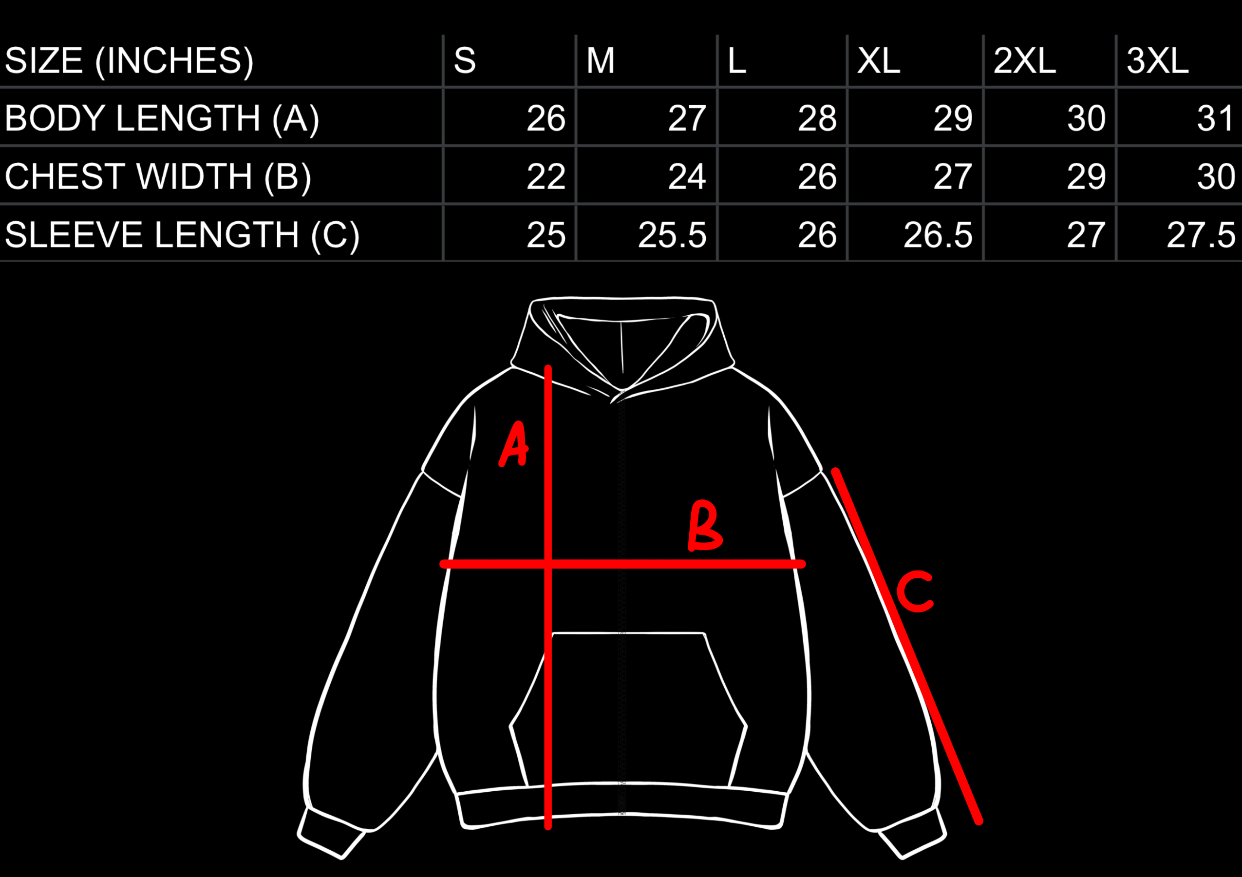 Large front right print, small patch on left chest, patches on each sleeve.