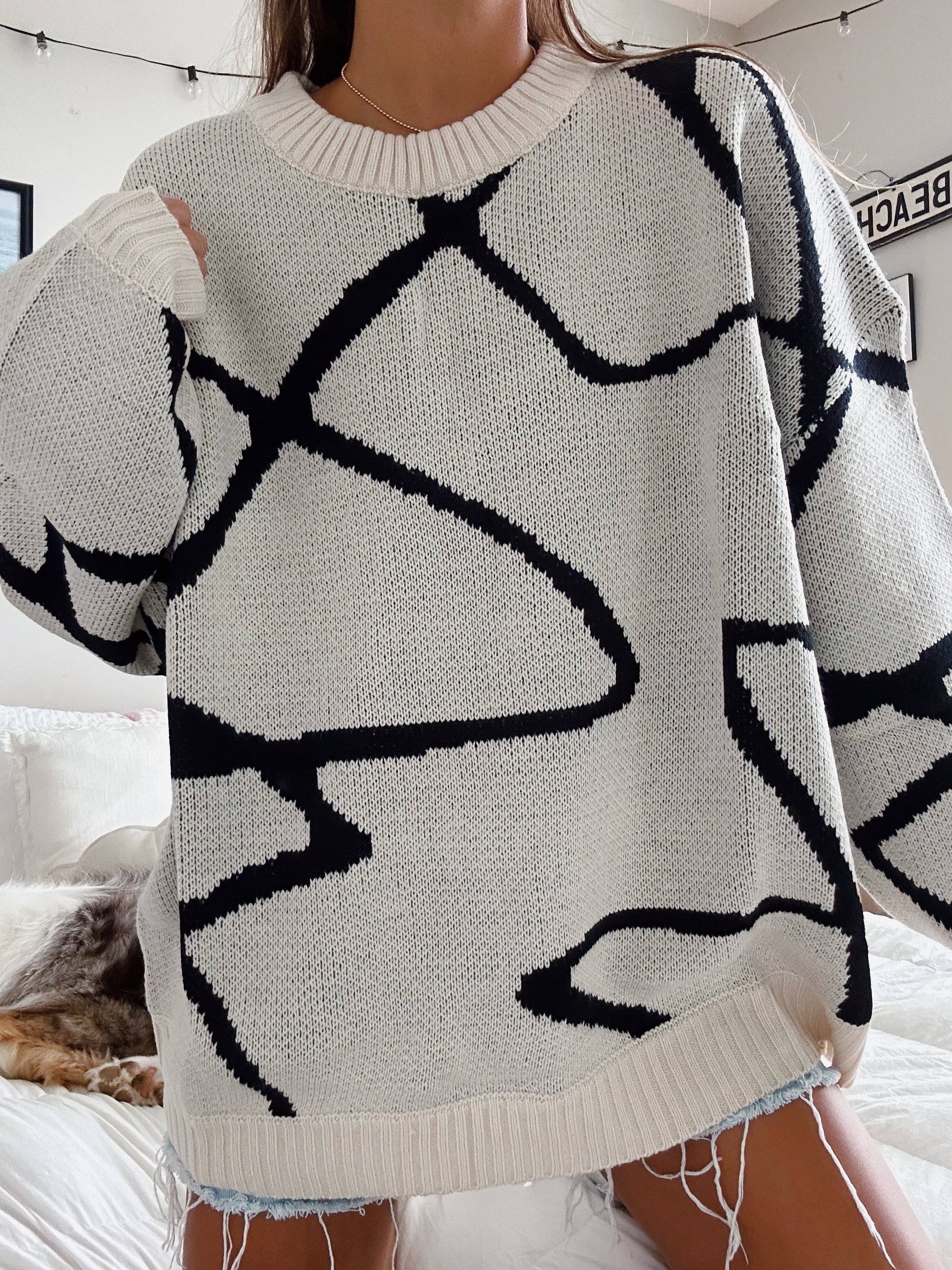 This black squiggle sweater is a cute adorable sweater to kick off fall!