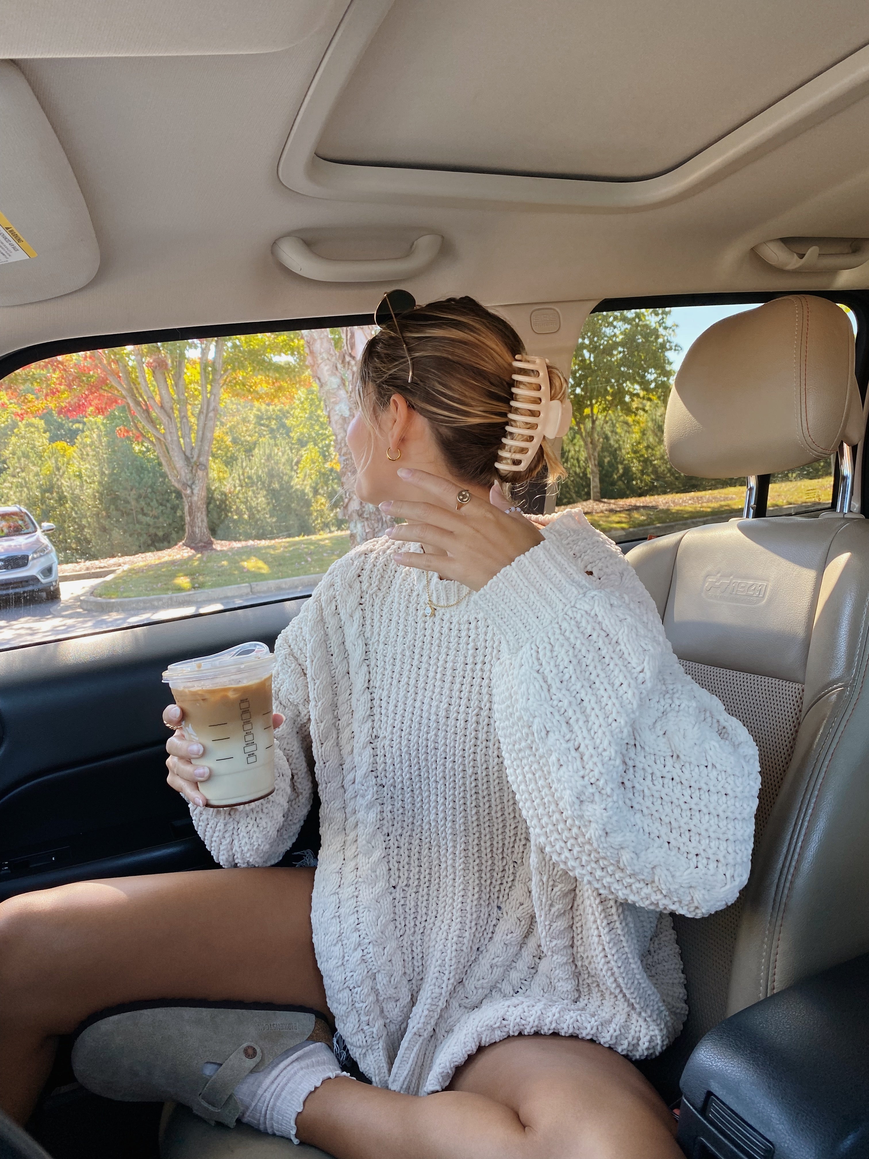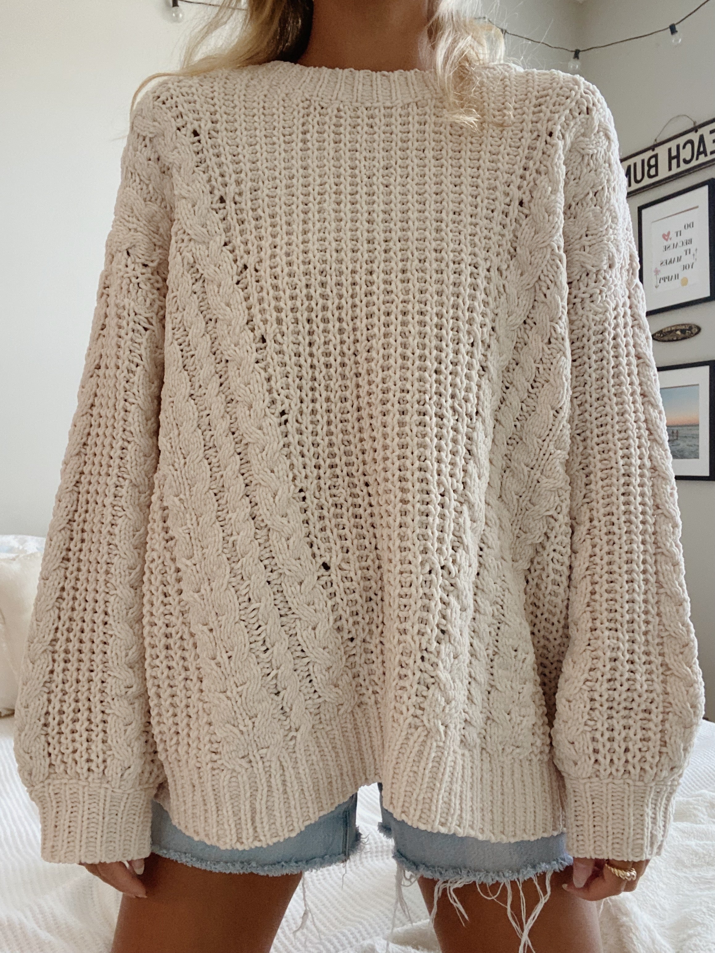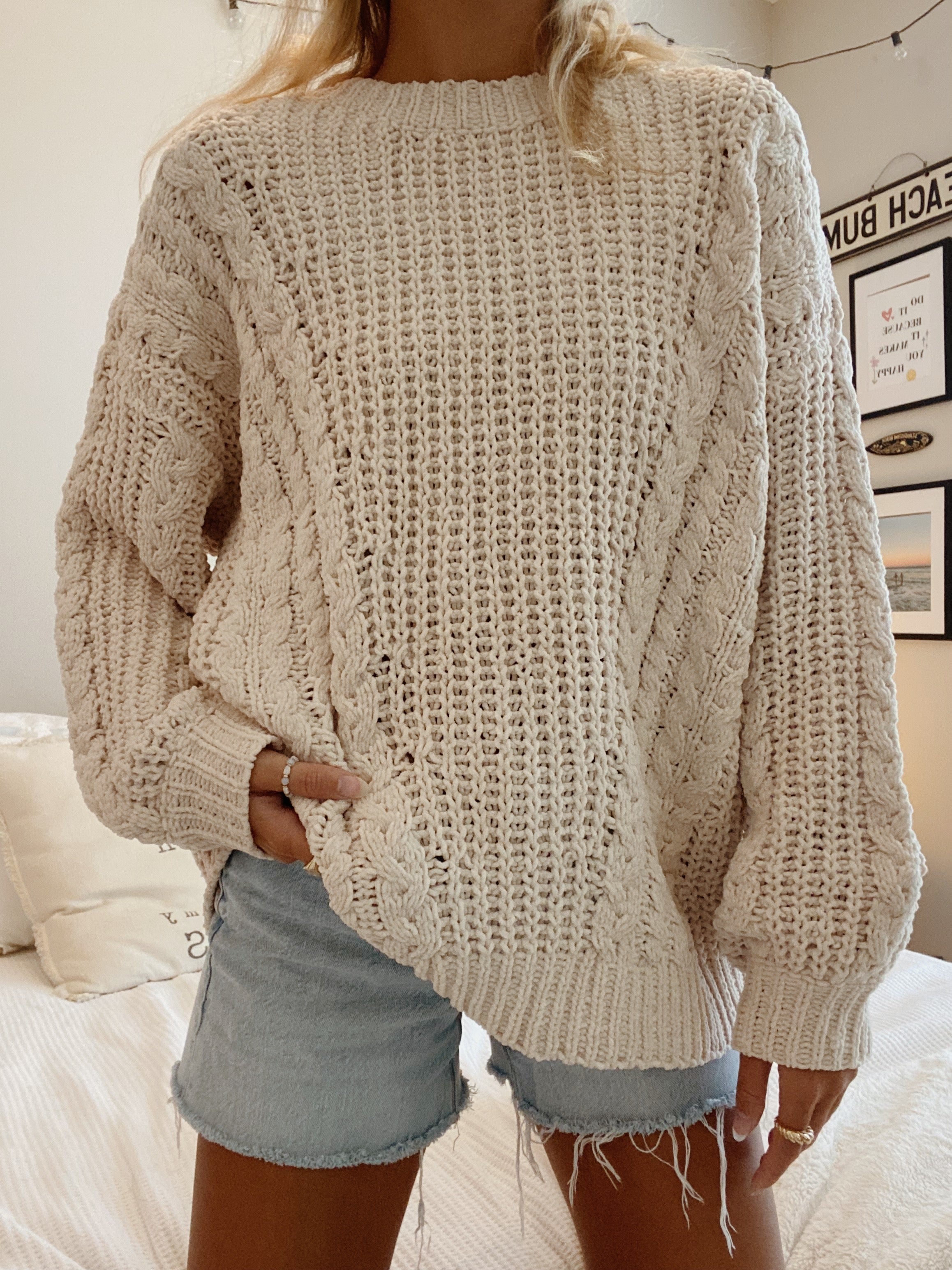 light beige chunky knit sweater •