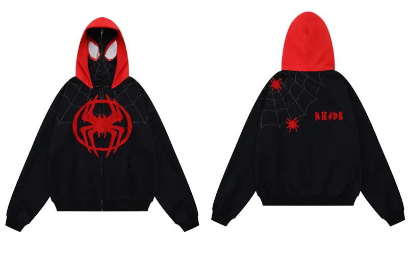 Spider Web Full Zip Up Sweatshirt 2024 Harajuku Punk Jacket Hoodie