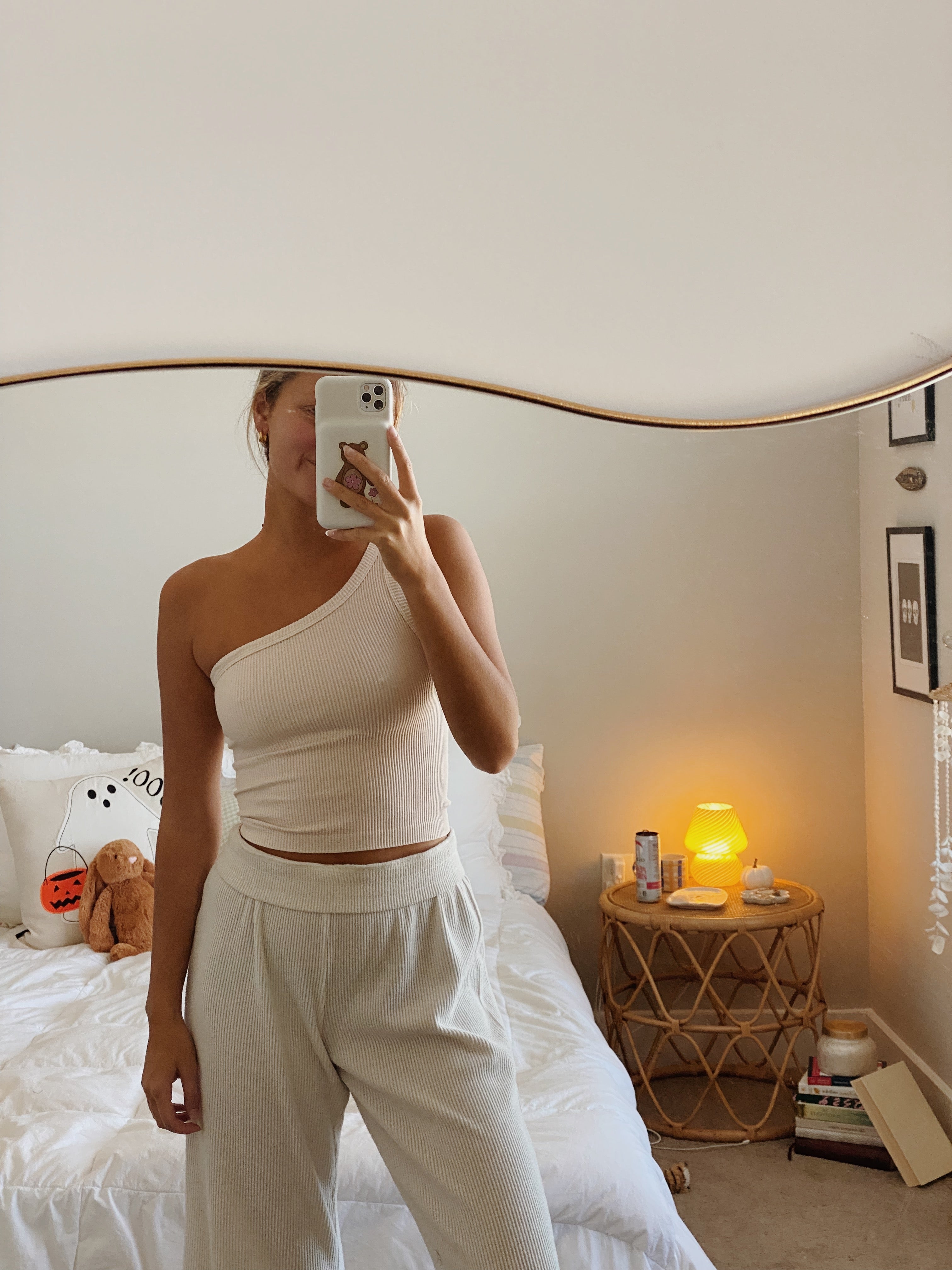 everyone’s favorite seamless tank is back but now as a cute one shoulder top!