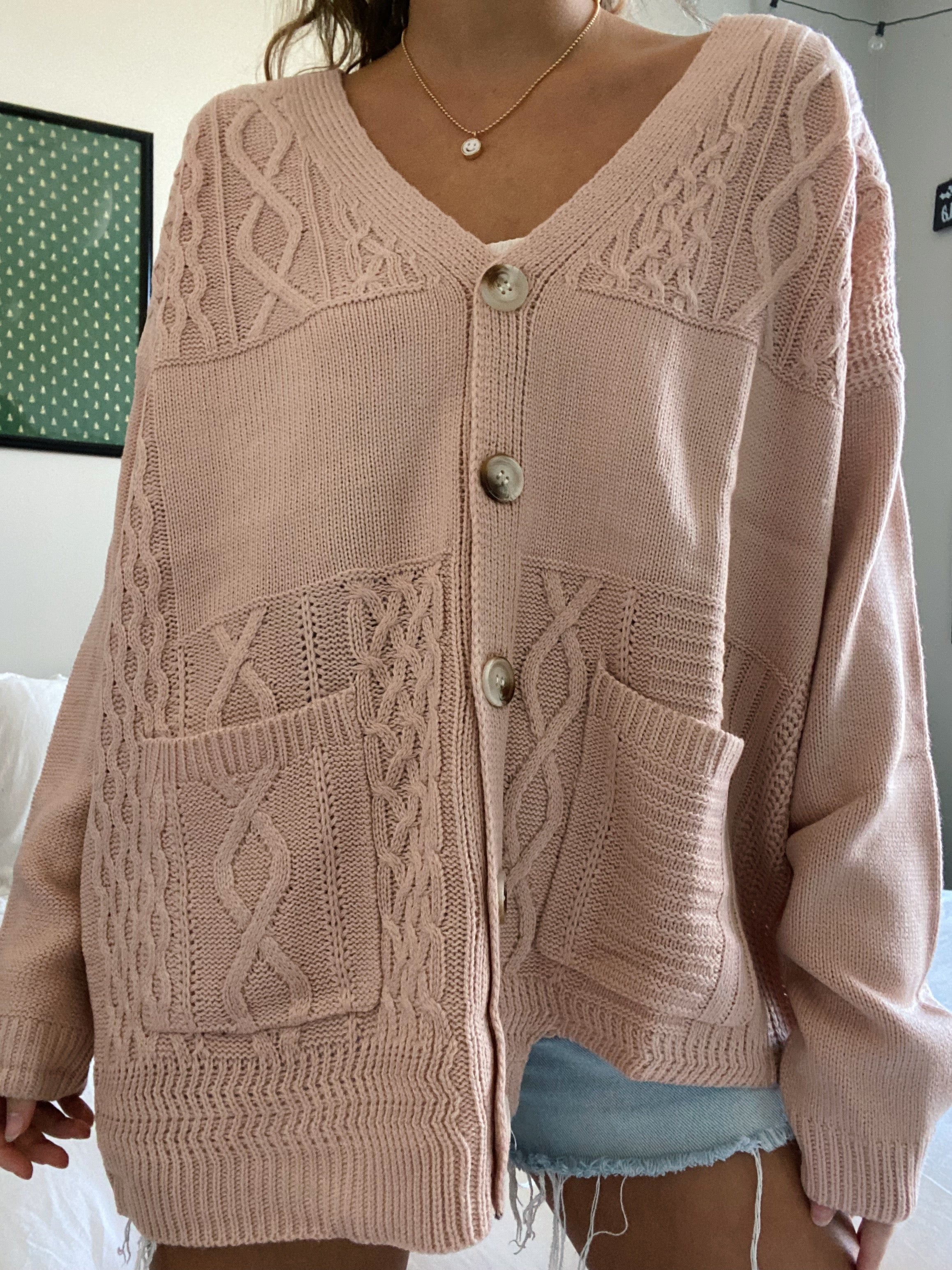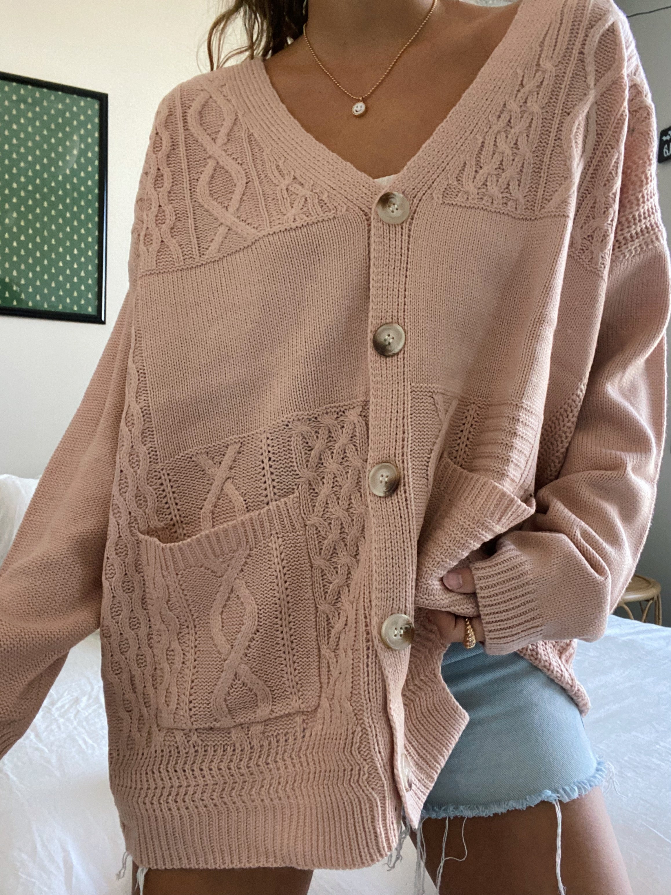 PINK UNEVEN CABLE KNIT CARDIGAN