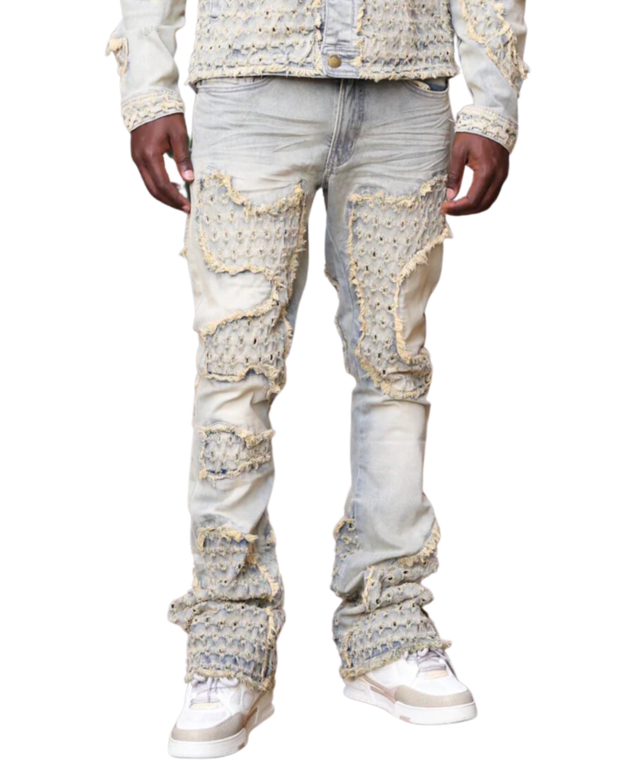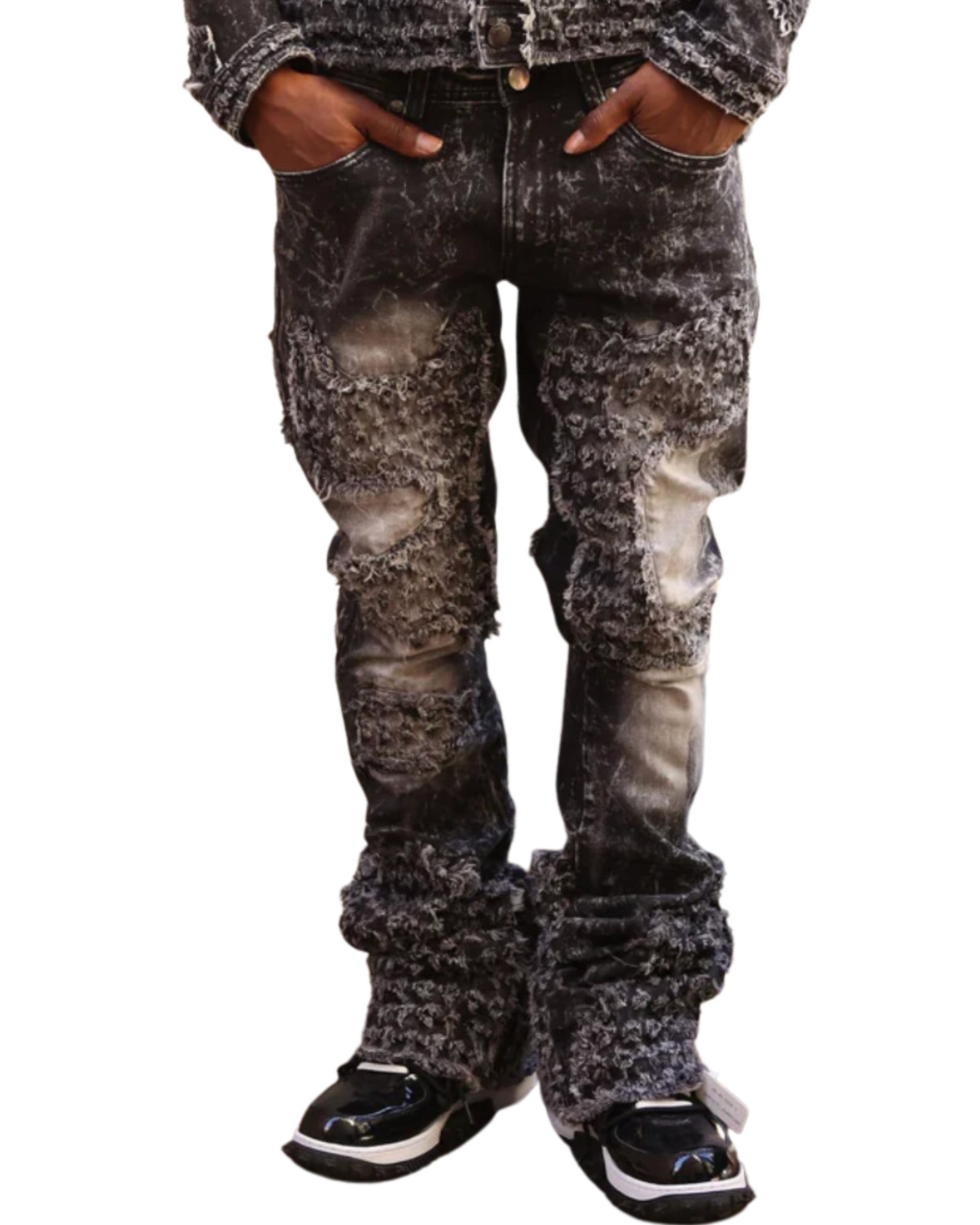 Tattered Denim Stacked Jeans
